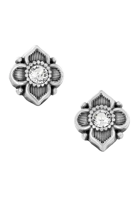 Featuring sensational Swarovski® crystals framed in a textured floral motif, these silver-plated post earrings are reminiscent of the opulence of a Spanish palace.