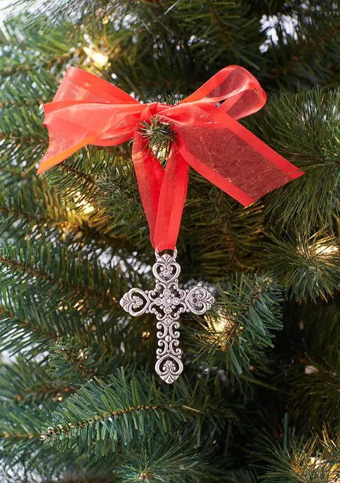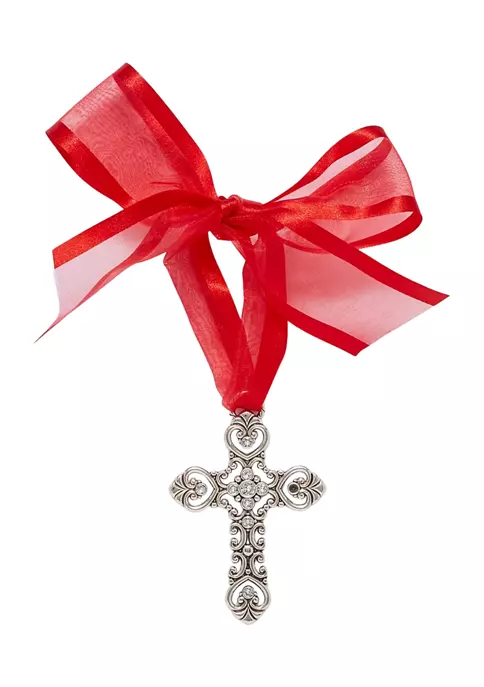 A cross ornament from Brighton® that shimmers and shines with a bright red bow makes a lovely addition to any Christmas tree.