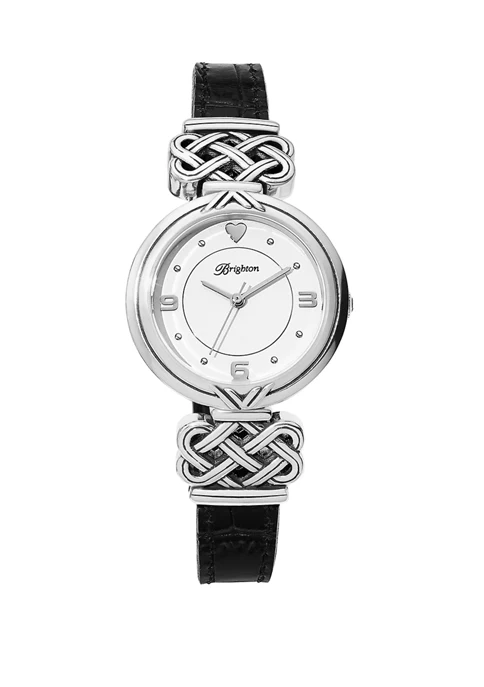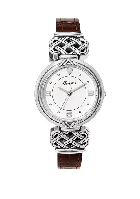 A Celtic-inspired motif frames a simple, elegant face on this watch from Brighton®, complete with a band that reverses to brown or black for ultimate versatility.