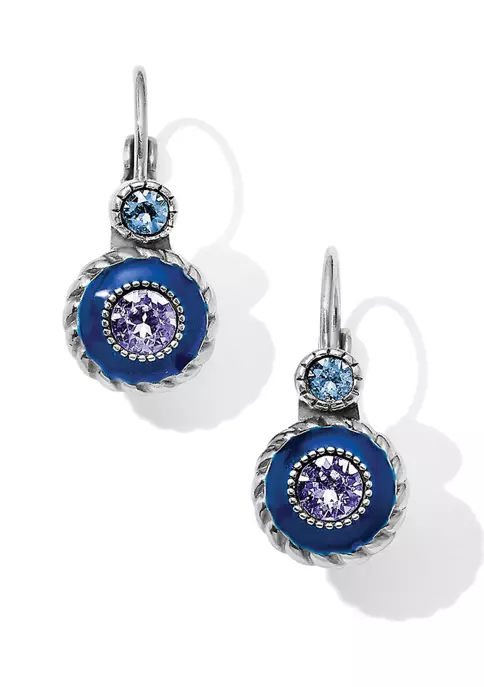 Intensely blue hand-painted enamel encircles twilight-hued Swarovski crystals for starry effect on these lever back earrings.