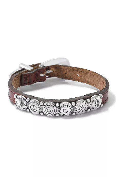For every woman who wishes for peace, love and beautiful jewelry – this BRIGHTON leather-branded bracelet with a row of artful silver conchos sends that message with every flip of your wrist. Perfect for everyday style and casual chic. A quiet standout!