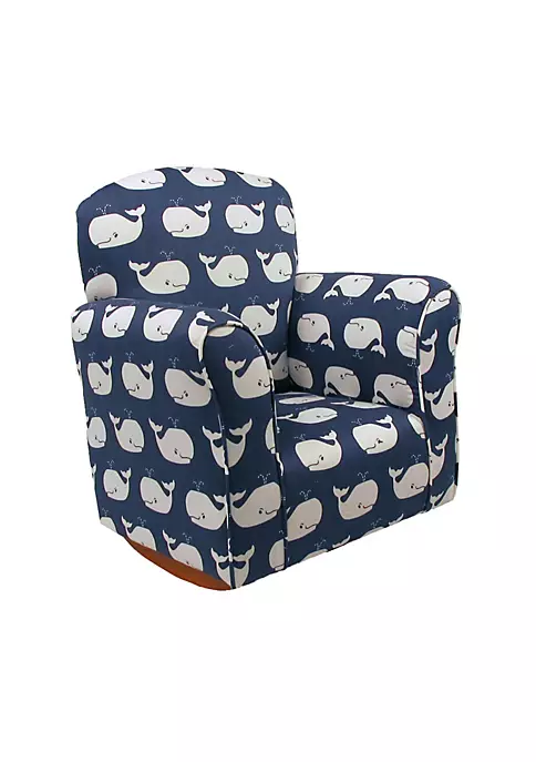 The specially crafted upholstered Kids Cotton Rocking Chair sized with growing toddler’s in mind is sure to be a hit with toddlers and parents alike. Upholstered in high quality, fun, kid friendly fabrics they are easy to clean and look great in any room of the house. Upholstered in kid durable, high quality cotton. Product Dimension: 15.5″Lx22″Wx23.5″H Designed for toddler’s ages 1-4. Product Weight: 15 lbs. Wooden frame for added style. Fabric: Whale Tales Printed Cotton. Country of origin: USA.