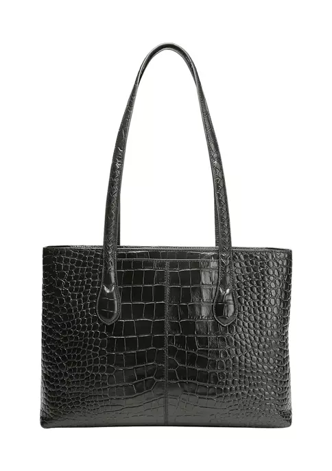 Pebbled leather creates textural allure on the Kelley Zip Tote that’s designed with a spacious interior and double shoulder straps.