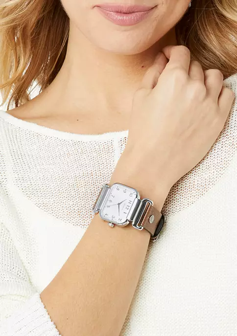Add a timely update to your look with this leather watch from Brighton®. Its leather band reverses from black to brown, so you can wear it with your entire wardrobe.