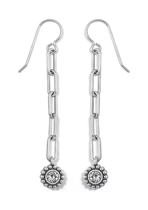These earrings by Baldwin feature a dandling chair design in silver with crystals on the bottom.